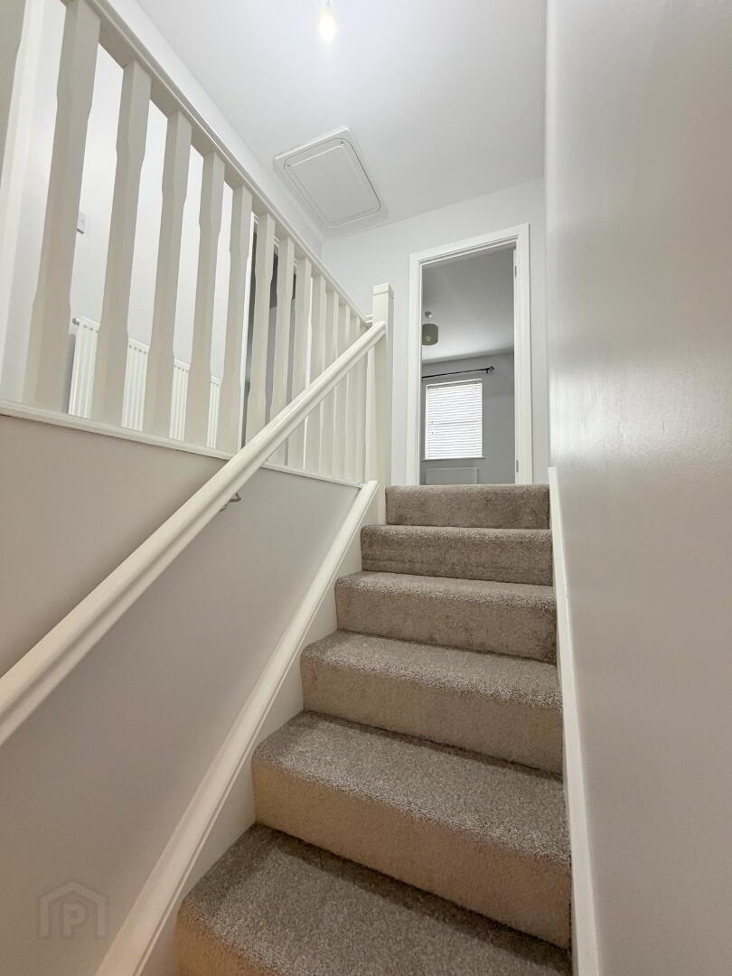 Stairs and Landing, laid in soft, plush ‘truffle’ carpet, leading to;