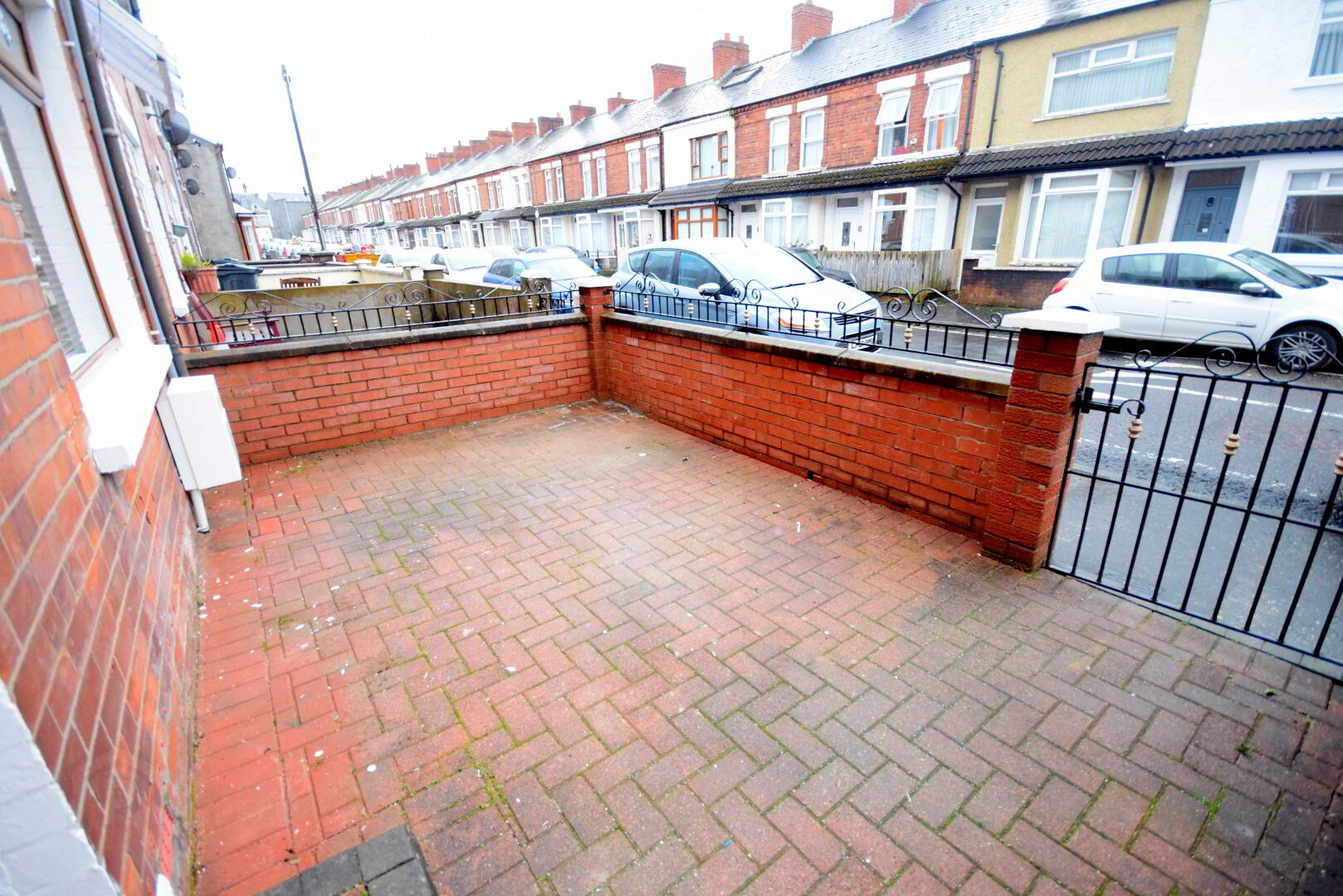 • Paved front garden with dwarf walls.
