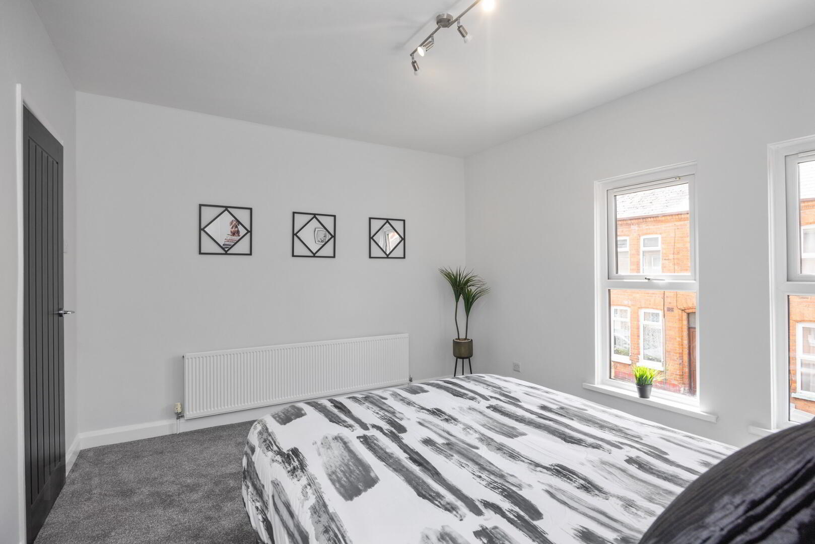 Generously sized double bedroom laid in plus grey carpet adding a modern touch. The spacious layout offers plenty of room for furniture and storage.