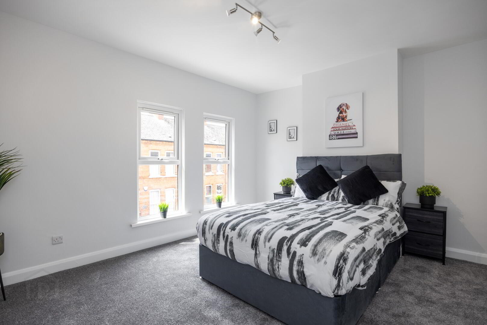 Two generously sized double bedrooms laid in plush grey carpet with underlay adding a modern touch. The spacious layout offers an abundance of room for furniture and storage.